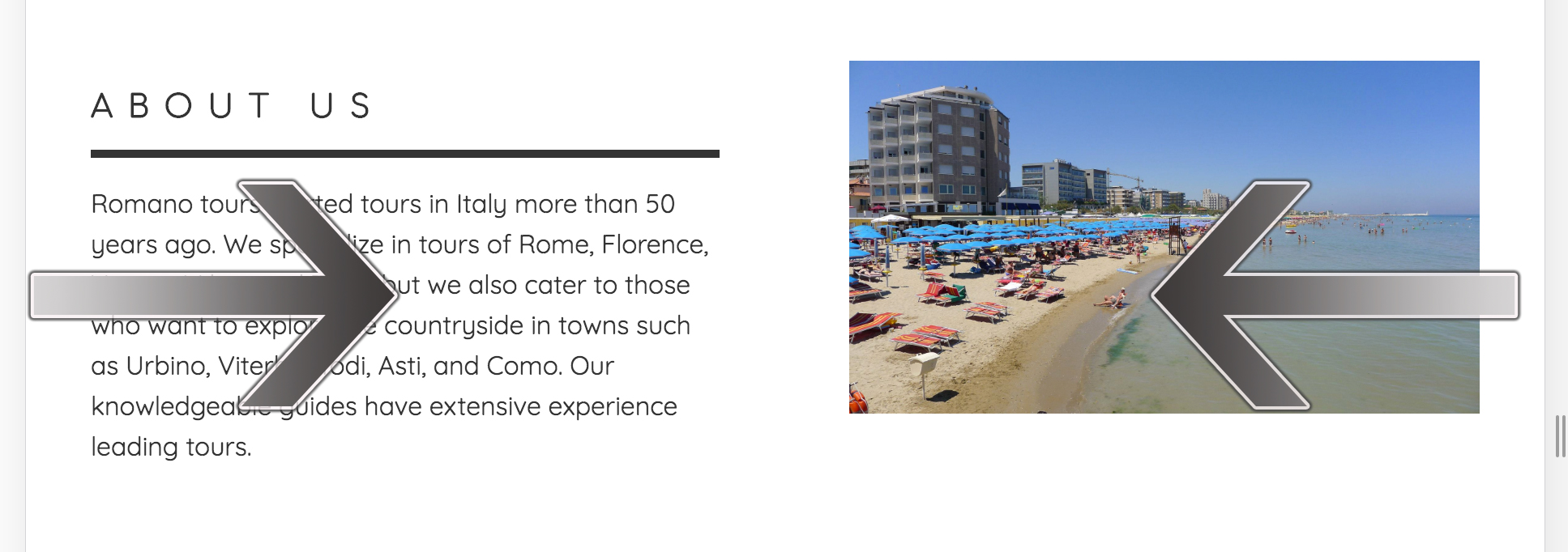 The second pane from the top of the page (shown to the left) includes a two column layout with text on the left and an image on the right. Notice on the site that when you scroll down to see this pane, the text fades in from the left and the image fades in from the right.
