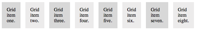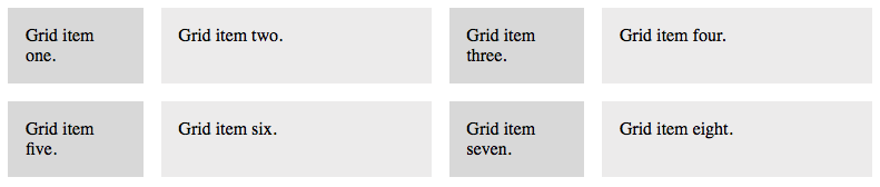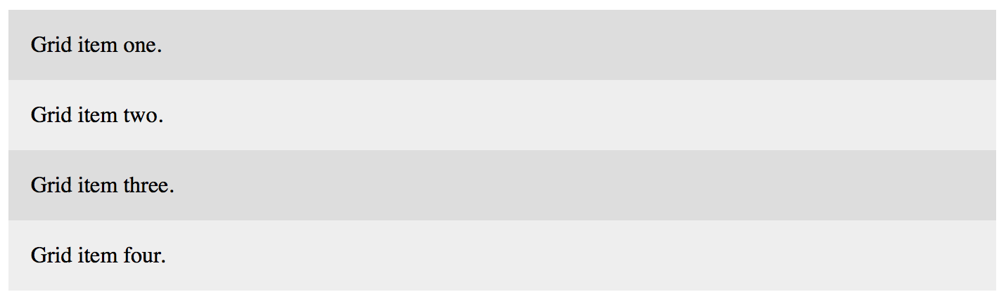 We'll begin by adding a little CSS to automatically shade the grid items in alternating shades of gray. Use the CSS code to the left to take care of that.