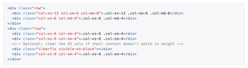 <div class="col-lg-8 col-xs-12">That's it. Bootstrap's classes have the CSS already in place to make that layout happen. You simply apply the class to your HTML and Bootstrap takes care of the rest.
