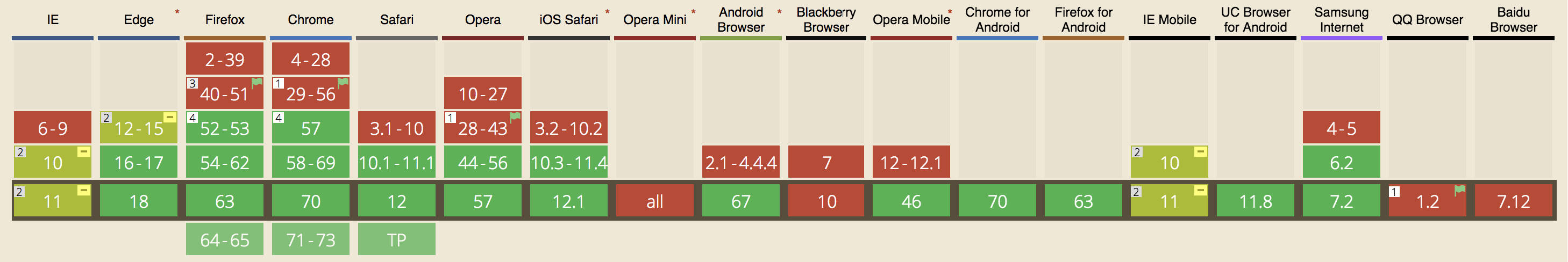 Browser support for CSS Grid made a huge step forward in 2017. Chrome, Firefox, Safari, and Opera all released versions with support in March, and Microsoft followed through with Edge in October. All major browsers now support it, as can be seen below and at caniuse.com.